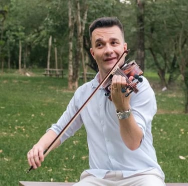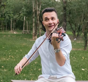 Violinista atualmente toca em igrejas, tocou na orquestra do centro cultural, hoje em dia toca na Fego Camargo.